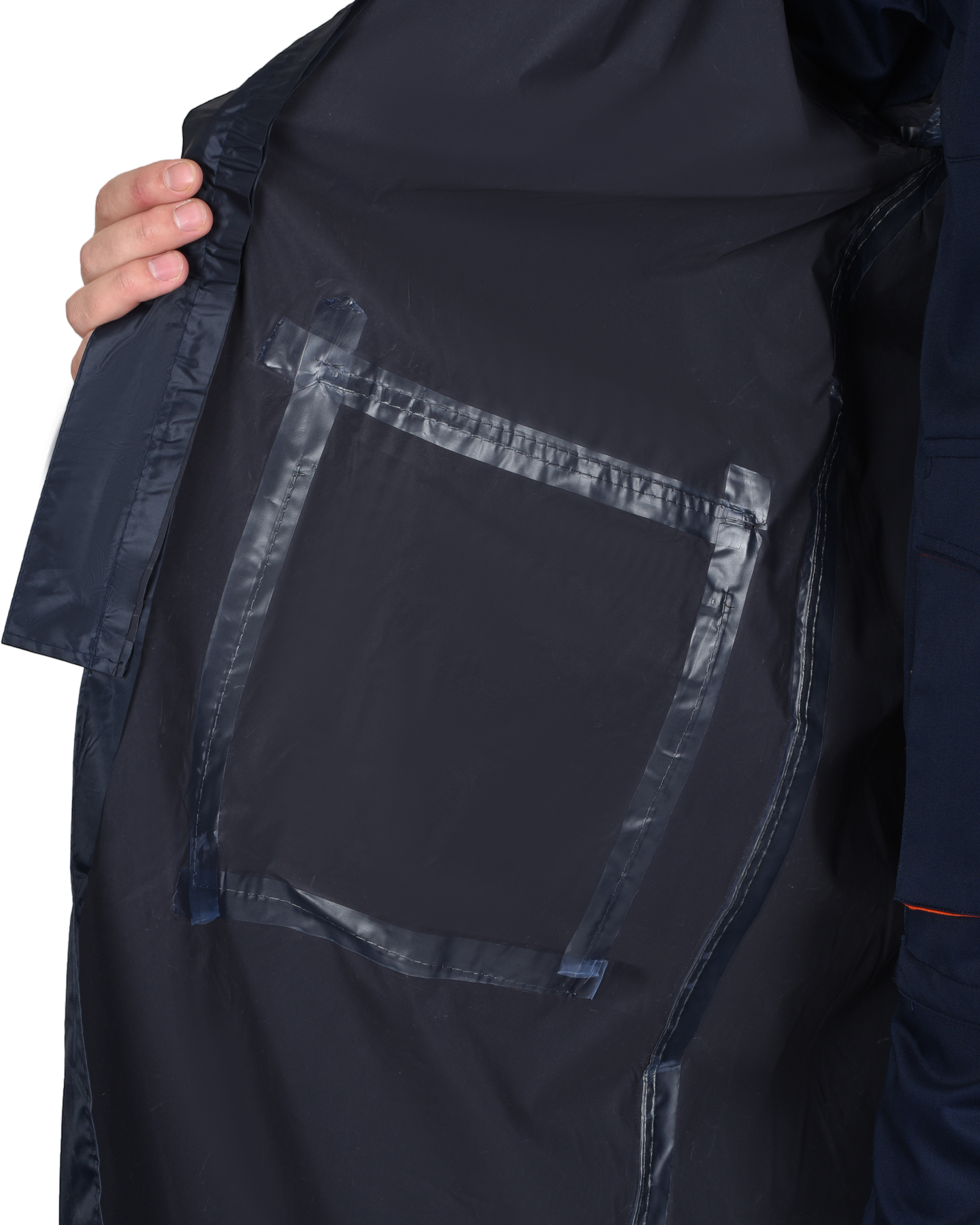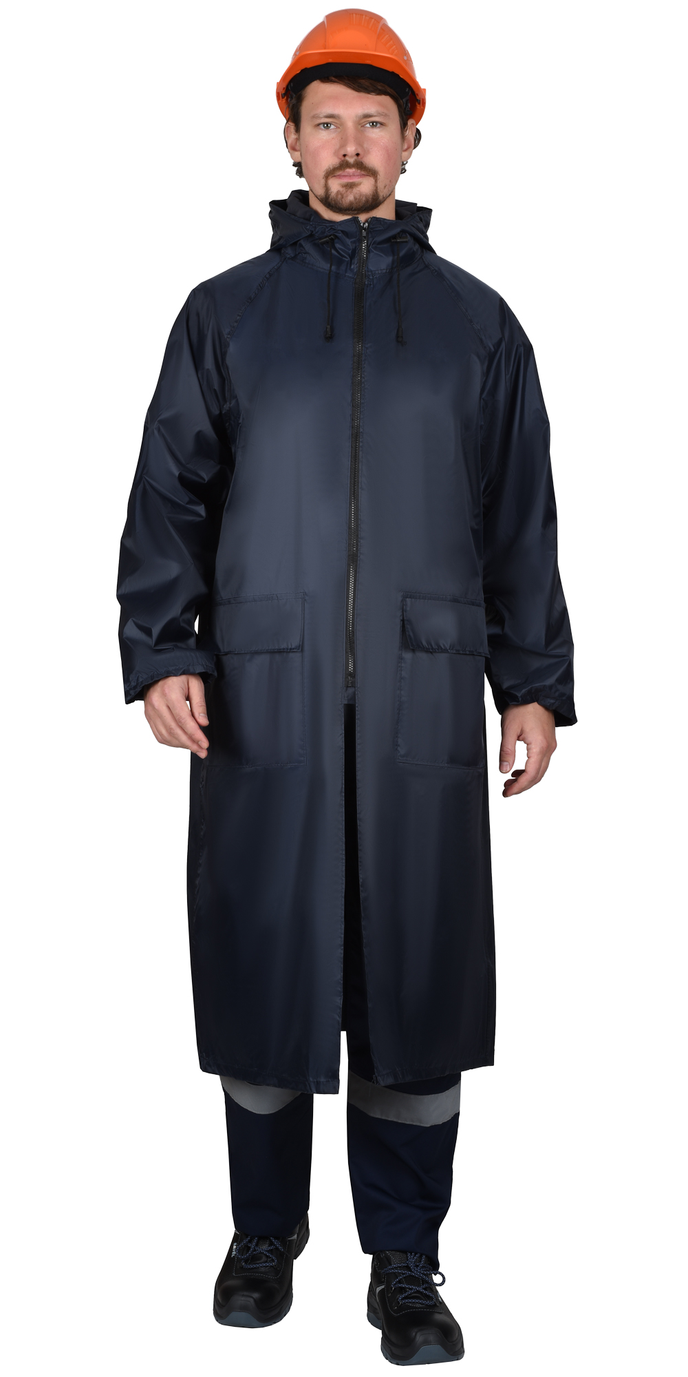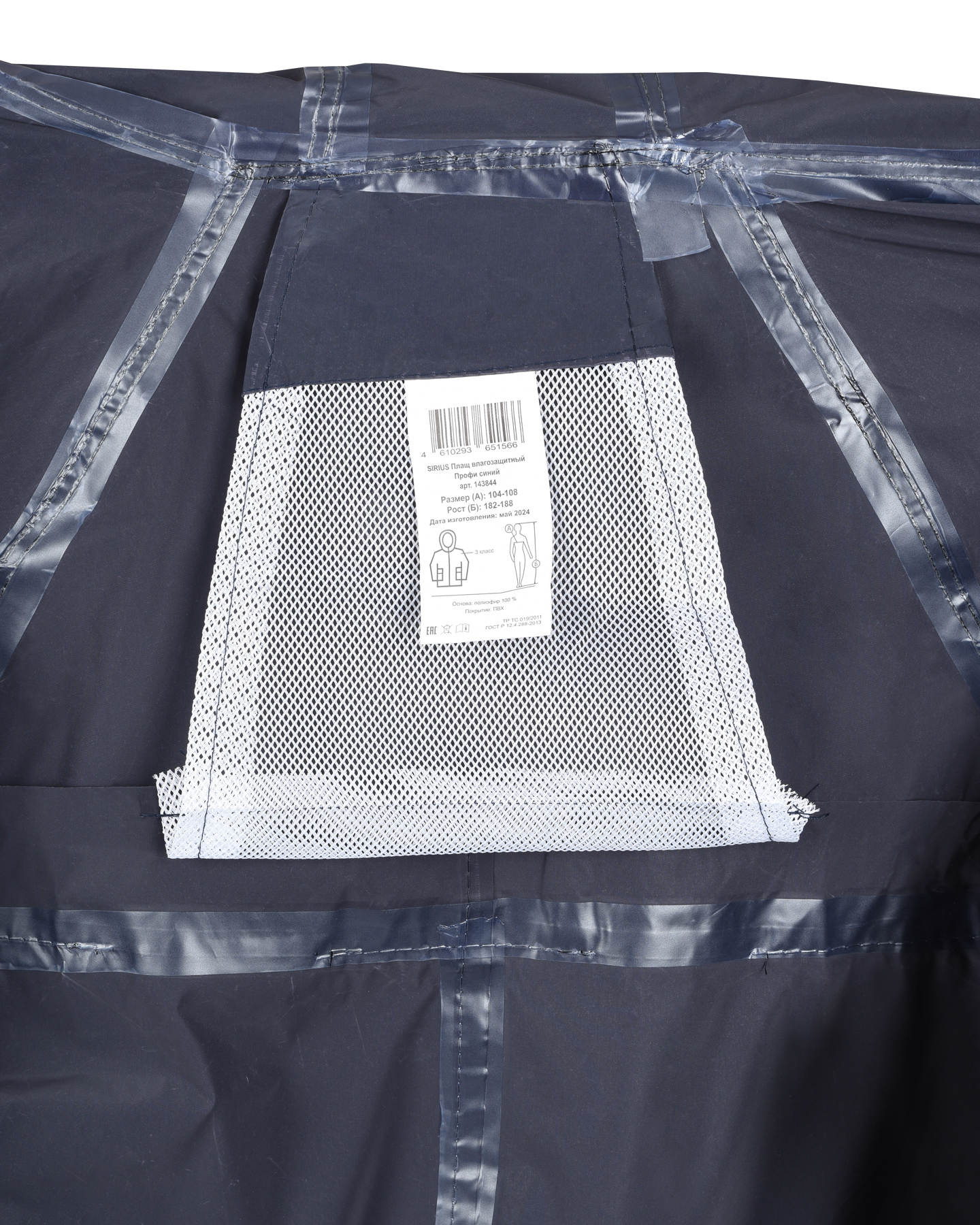 Плащ имеет два накладных кармана с клапанами. Центральная застежка на молнию со скрытой внутренней ветровой планкой. Все швы прошиты и склеены. Каждый плащ упакован в отдельный прозрачный пакет.