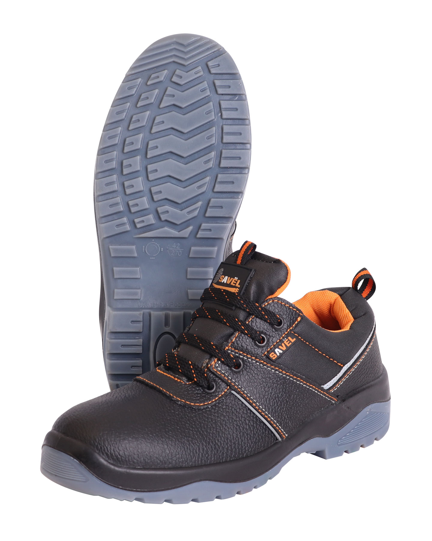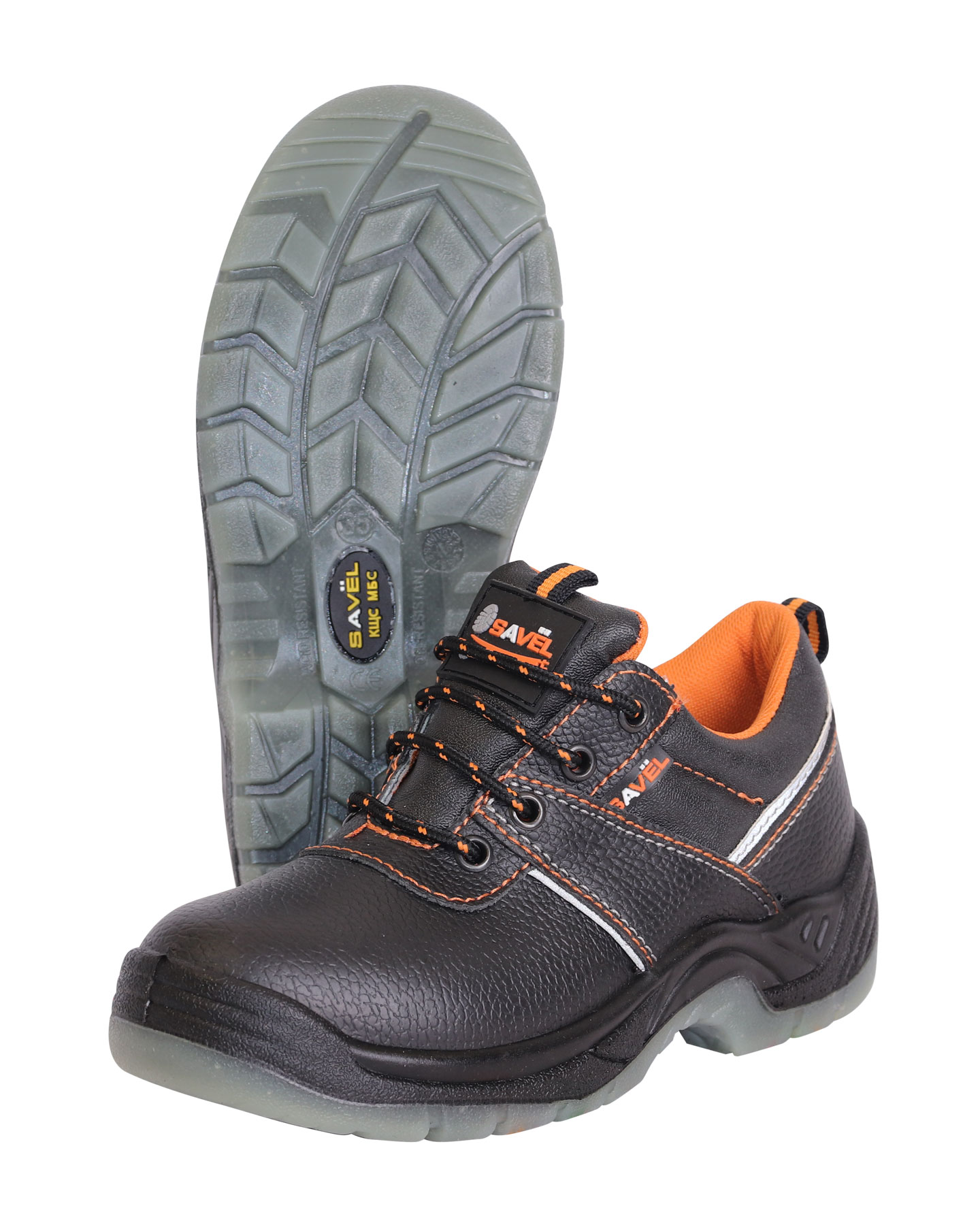Верх обуви изготовлен из кожи со специальным покрытием для защиты от ОПЗ, МВ, МВО. Застежка на шнурок. Подошва двухслойная ПУ/ТПУ: полиуретан обладает амортизирующими свойствами, гасит ударные нагрузки, а также придает обуви лёгкость, комфорт и повышенные теплозащитные свойства. Термополиуретан обладает гибкостью и прочностью, поэтому обувь с подошвой из этого материала прослужит долго. Литьевой метод крепления подошвы обеспечивает с верхом обуви единое целое, в результате достигается полная герметичность в месте литья. Такой метод крепления является самым прочным и долговечным на сегодняшний день. Подошва сохраняет свои свойства в широком диапазоне температур и обладает стойкостью к воздействию масел, сырой нефти, нефтепродуктов. Подклад в полуботинках серии "SAVEL-Европа" оранжевого цвета и выполнен из воздухопроницаемого нетканого материала «типика», который обеспечивает комфортный микроклимат, быстро сохнет и имеет высокую степень устойчивости к истиранию. Верх ботинка имеет контрастные отделочно-скрепляющие строчки оранжевого цвета, как и подкладка, а также световозвращающие вставки для лучшей видимости в тёмное время суток. Колодка обладает полнотно-размерными характеристиками защитной обуви, предназначенной для эксплуатации в летний и весенне-осенний периоды, даёт возможность работать полный рабочий день с комфортом и без усталости. Обувь предназначена для работы в нефтегазовой, горнодобывающей, энергетической, химической промышленности, на транспорте, в агропромышленном комплексе и сервисных службах.