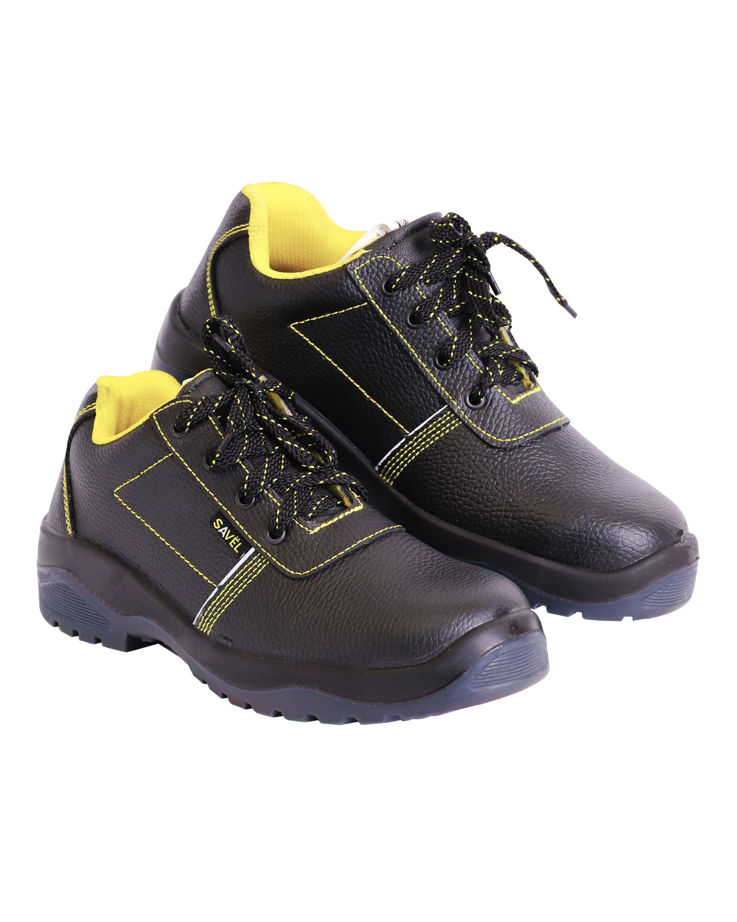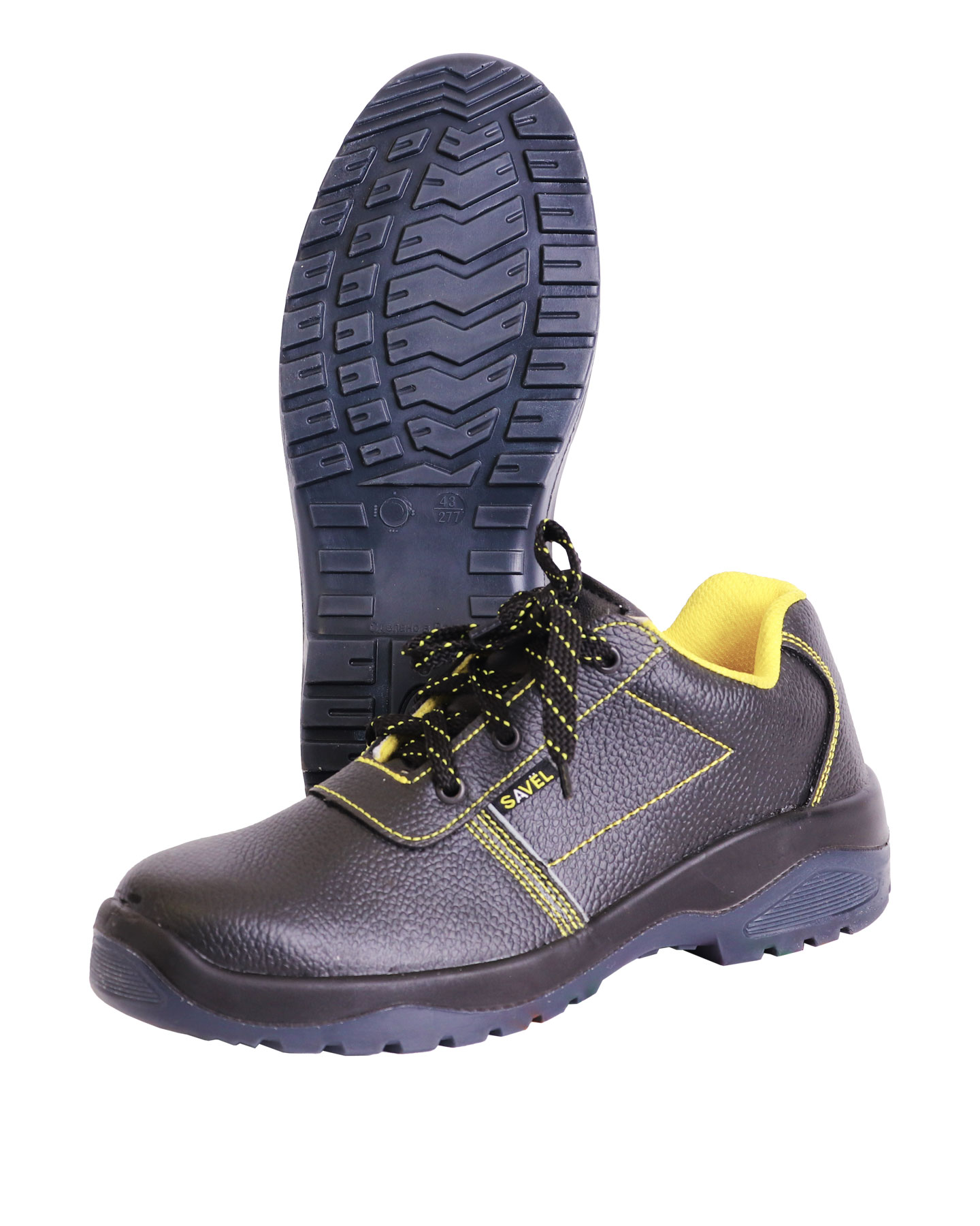 Верх обуви изготовлен из кожи со специальным покрытием для защиты от ОПЗ, МВ, МВО. Застежка на шнурок. Подошва двухслойная ПУ/ТПУ: полиуретан обладает амортизирующими свойствами, гасит ударные нагрузки, а также придает обуви лёгкость, комфорт и повышенные теплозащитные свойства. Термополиуретан обладает гибкостью и прочностью, поэтому обувь с подошвой из этого материала прослужит долго. Литьевой метод крепления подошвы обеспечивает с верхом обуви единое целое, в результате достигается полная герметичность в месте литья. Такой метод крепления является самым прочным и долговечным на сегодняшний день. Подошва сохраняет свои свойства в широком диапазоне температур и обладает стойкостью к воздействию масел, сырой нефти, нефтепродуктов. Подклад в полуботинках серии "SAVEL-Профи" жёлтого цвета и выполнен из воздухопроницаемого нетканого материала «типика», который обеспечивает комфортный микроклимат, быстро сохнет и имеет высокую степень устойчивости к истиранию. Верх ботинка имеет контрастные отделочно-скрепляющие строчки жёлтого цвета, как и подкладка. Полуботинки оснащены металлоподносками, предохраняющими ноги от удара и имеющими удельное сопротивление деформациям не менее 200 Дж, что регламентировано европейскими стандартами (EN-345). Антипрокольная стелька, расположенная между промежуточным слоем подошвы и штробельной подкладкой, дополнительно защищает стопы ног от проколов, порезов, сильных ударов и прочих производственных травм. Колодка обладает полнотно-размерными характеристиками защитной обуви, предназначенной для эксплуатации в летний и весенне-осенний периоды, даёт возможность работать полный рабочий день с комфортом и без усталости. Обувь предназначена для работы в нефтегазовой, горнодобывающей, энергетической, химической промышленности, на транспорте, в агропромышленном комплексе и сервисных службах.