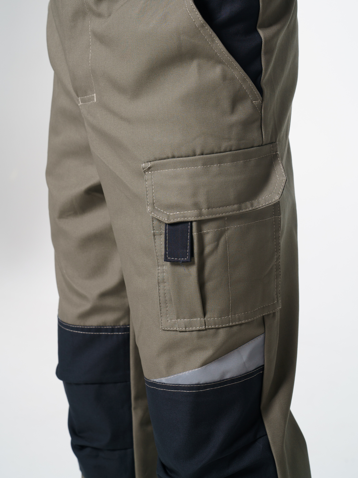 Полукомбинезон с застёжкой гульфика на молнию и застёжкой в боковом шве на пуговицы; с различными многофункциональными карманами; с объемными наколенниками. В полукомбинезоне предусмотрена лента светоотражающая (мелкодисперсная белая) 50 мм фигурной формы.