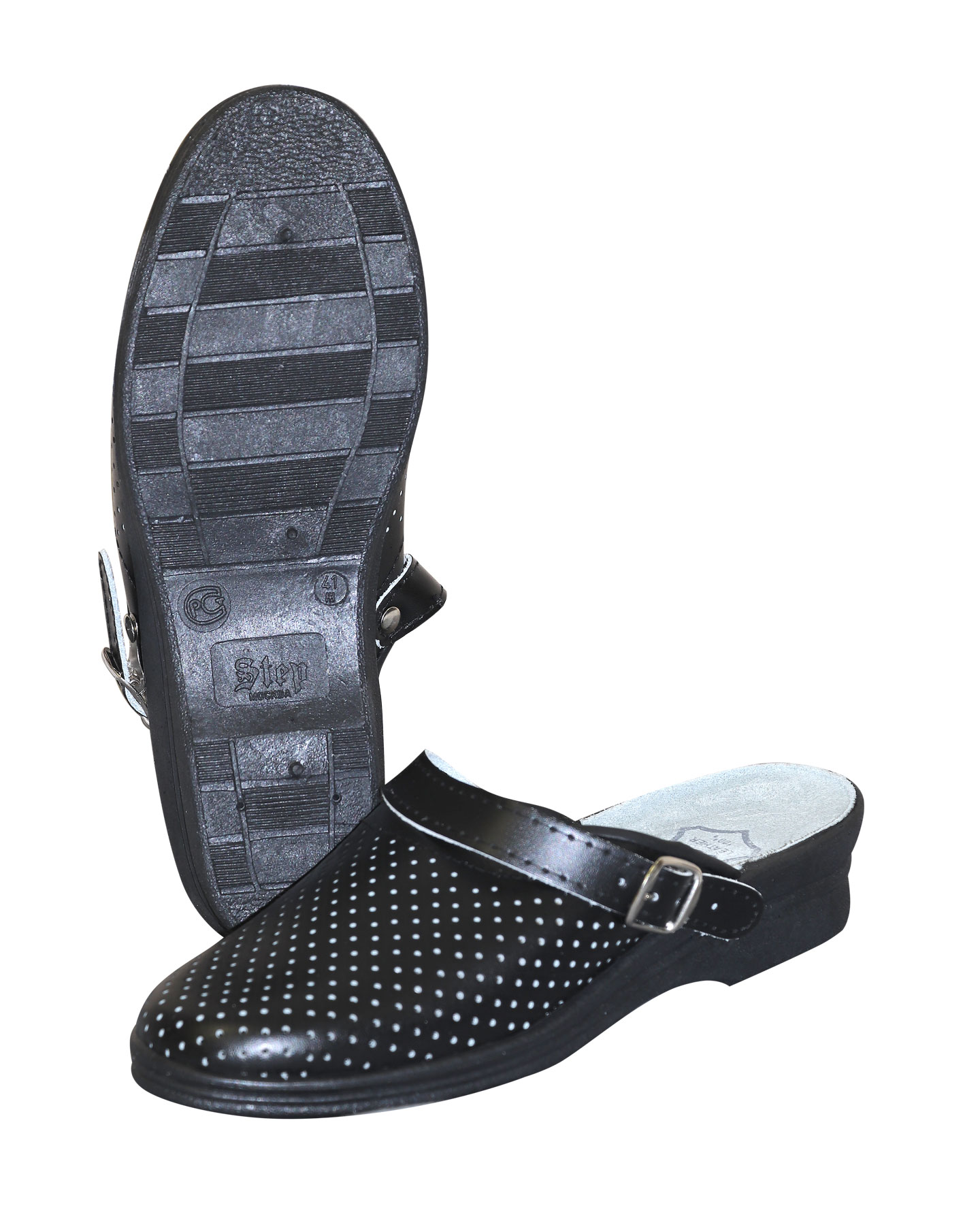 Сабо женские чёрные, кожа, ПВХ, с ремешком Step (41)