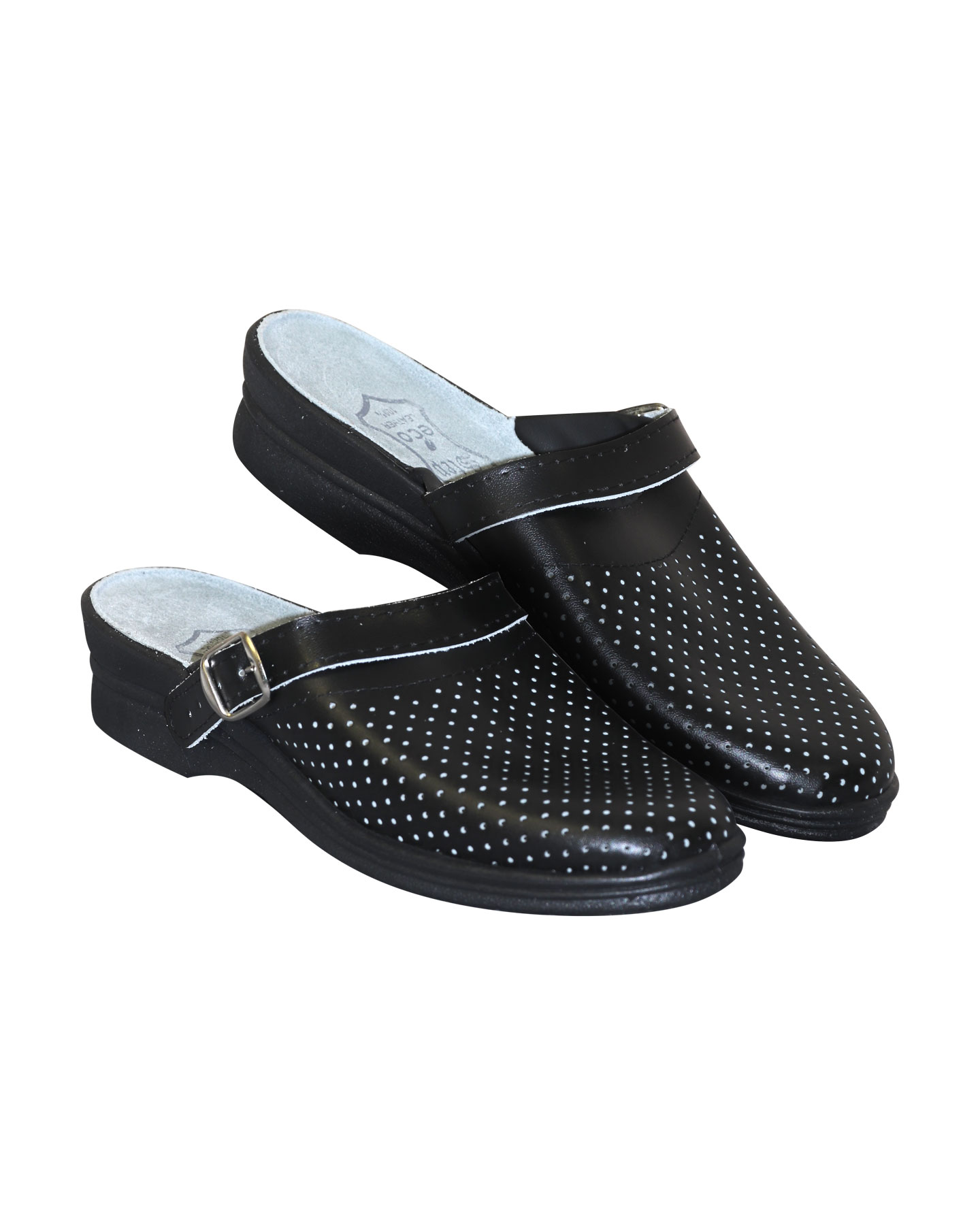 Сабо женские чёрные, кожа, ПВХ, с ремешком Step