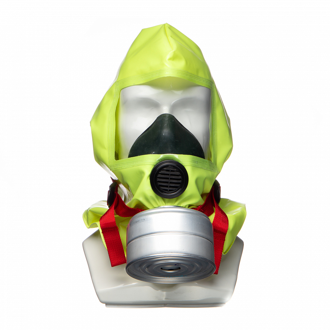 Капюшон и смотровое окно выполнены из огнестойких материалов, несъемный фильтр имеет металлический корпус.