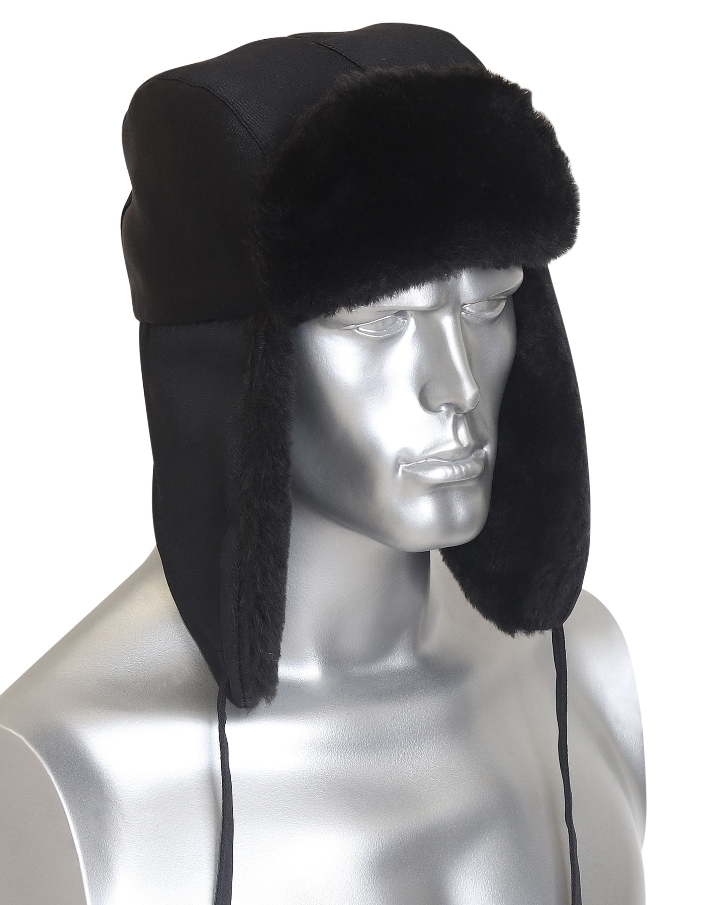 Шапка-ушанка зимняя черная с искусственным мехом черного цвета. В затылочной части объем регулируется за счет резинки и фиксатора.