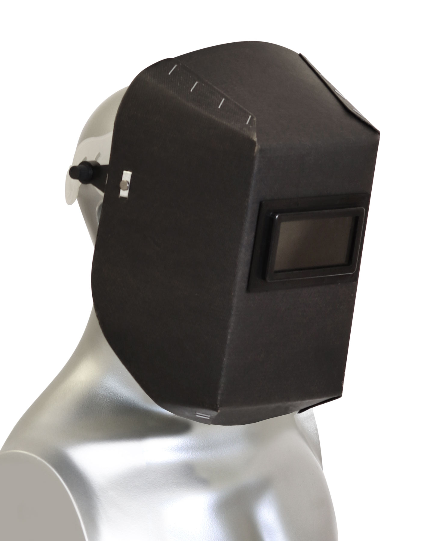 Корпус изготавливается из электроизоляционного картона, надежно защищает лицо и шею электросварщика от искр и брызг раскаленного металла. Размер светофильтра — 102х52.