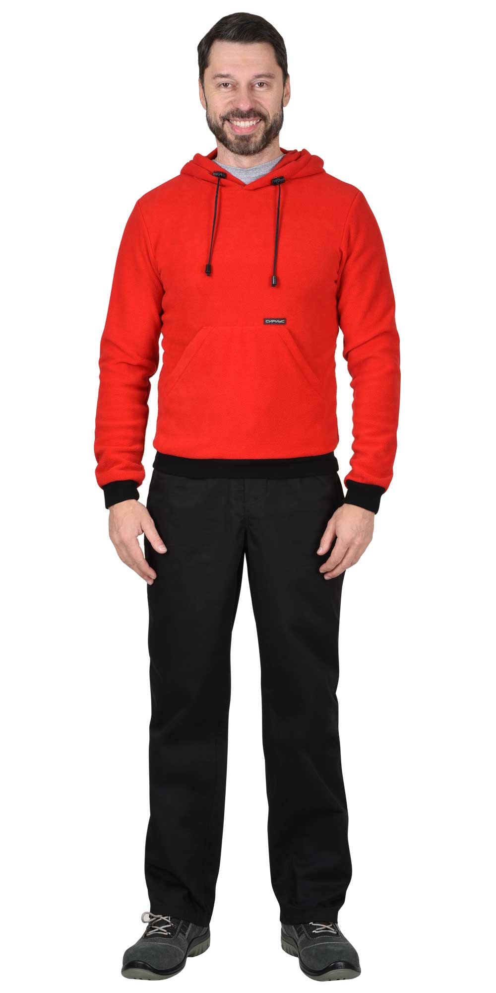 Толостовка прямого силуэта; без центральной застежки; с втачным капюшоном; с нижним накладным большим фигурным карманом с боковыми наклонными входами. Рукава втачные с притачными манжетами. Низ куртки обработан притачным поясом из трикотажного полотна.