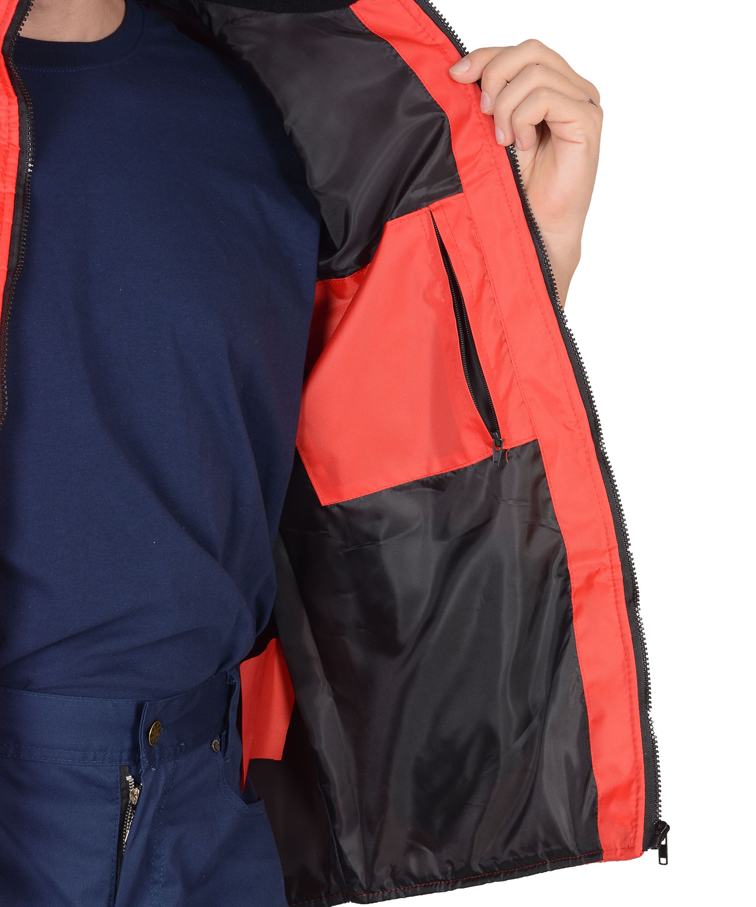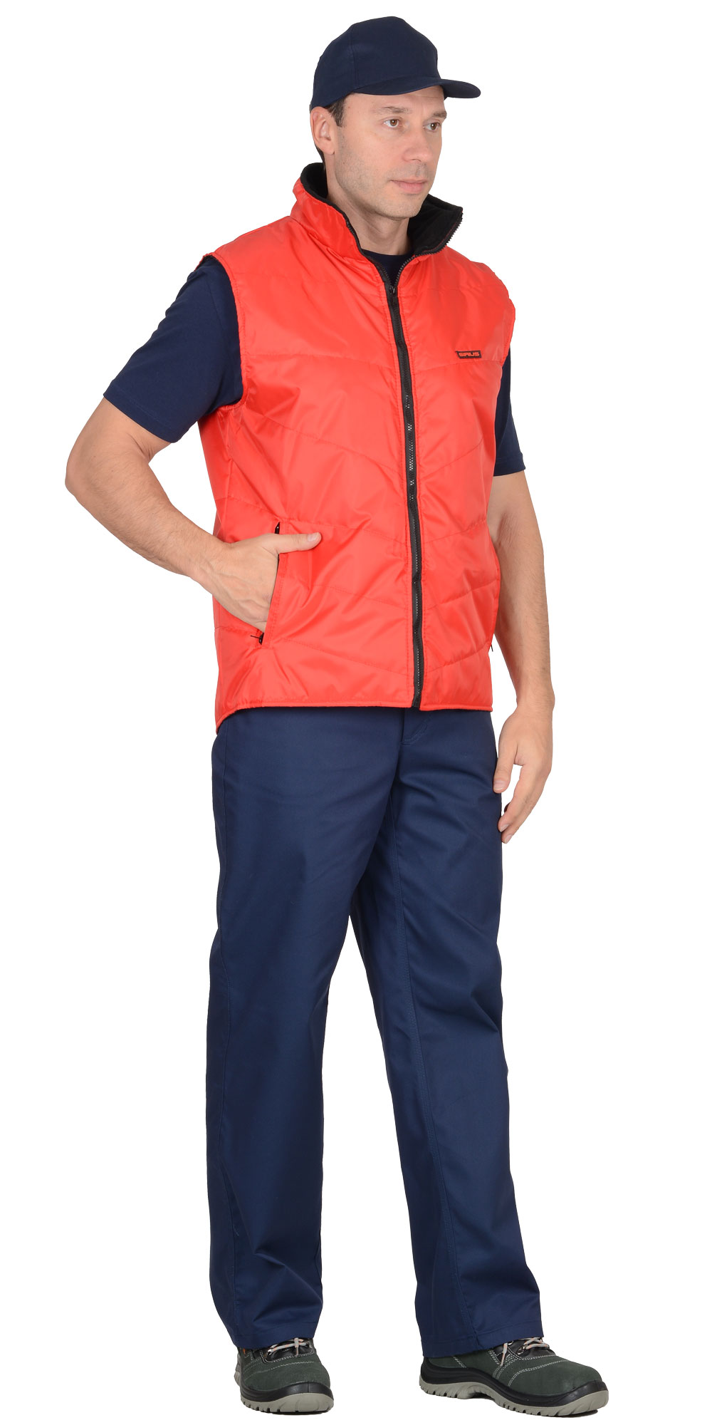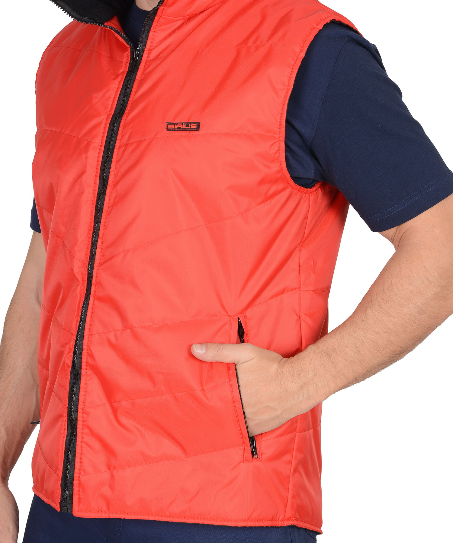 Жилет мужской утеплённый, стёганный, прямого силуэта, с воротником - "стойка" и центральной бортовой застёжкой на молнию. Внутренняя сторона ворота - флис. Изделие с прорезными карманами в рамку на молнию и внутренним карманом на молнию. Спинка жилета удлиненная