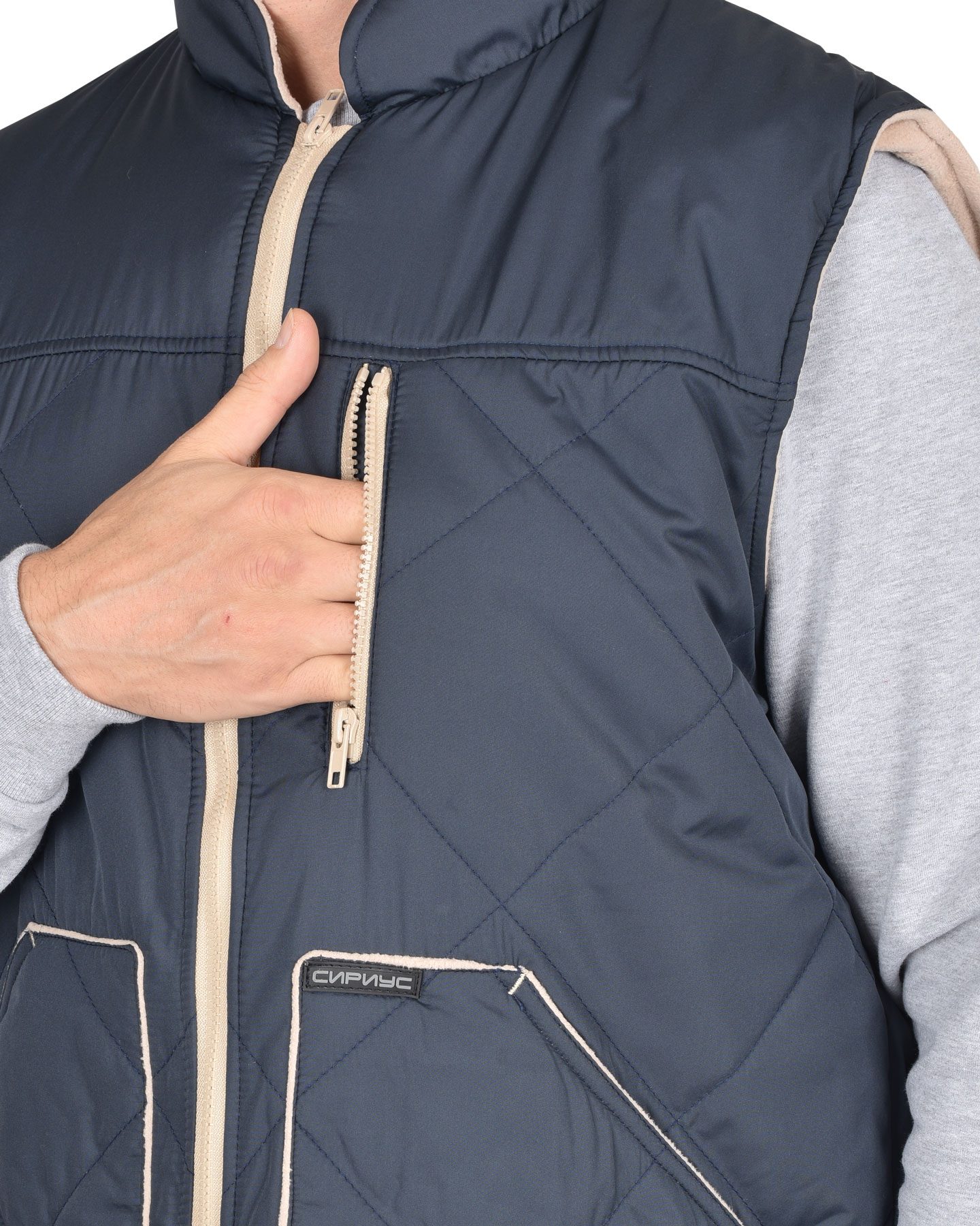 Жилет "ЕВРОПА" удлиненный (на подкладке флис бежевый) сине-серый (ЧЗ)