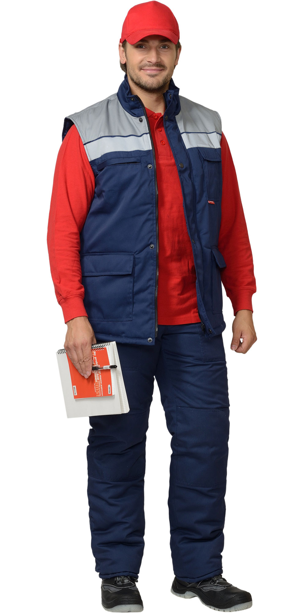 Жилет "Спец" утеплённый мужской синий с серым (ЧЗ)