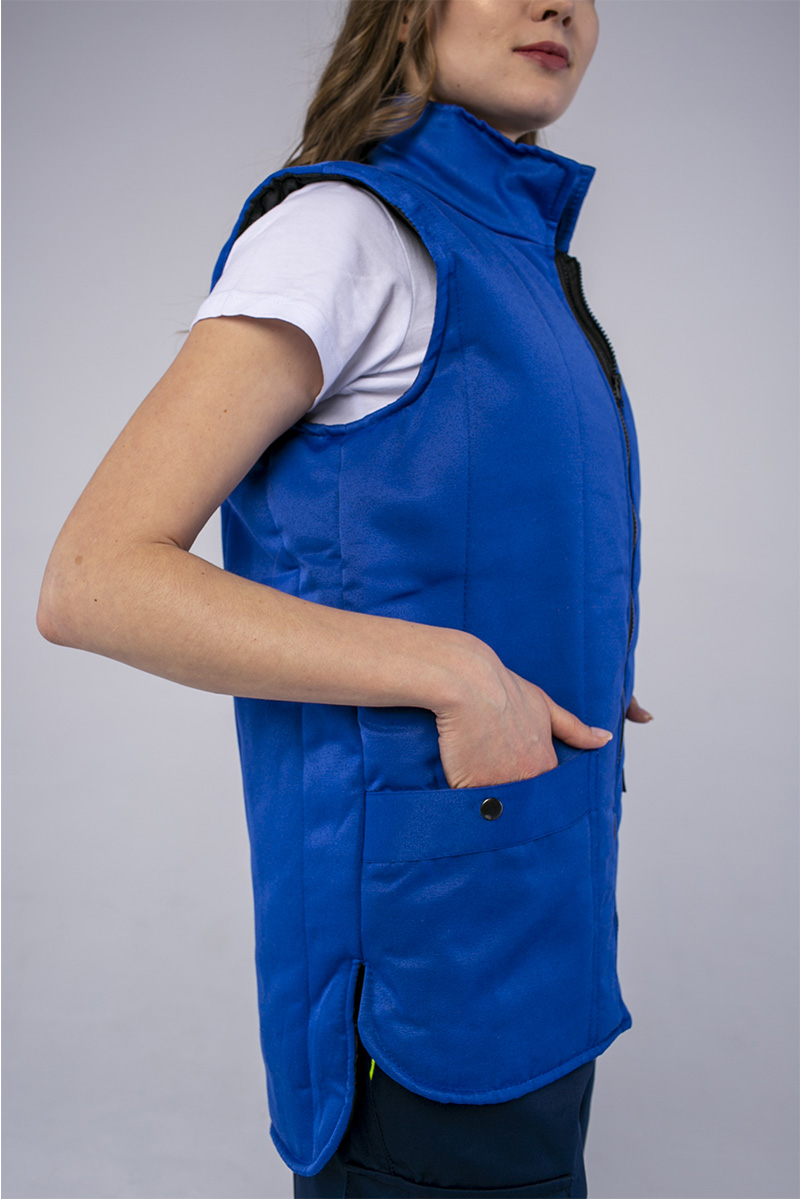 Жилет утепленный «Универсальный» предназначен для комфортной работы в холодное время года или повседневной носки на прогулках, во время путешествий и активного отдыха. Универсальный теплый жилет подходит как мужчинам, так и женщинам, прекрасно садится по фигуре и не стесняет движения благодаря боковым разрезам с округлыми углами. Удлиненная спинка полностью закрывает поясницу, препятствуя ее переохлаждению даже во время наклонов, а с помощью молнии жилет удобно надевать и снимать. Благодаря плотной ткани с влагоотталкивающей пропиткой жилетка надежно защищает от осадков и отличается износостойкостью. Утеплитель синтепон помогает сохранить тепло, а воротник-стойка закрывает шею от ветра. Безрукавка дополняется удобными боковыми карманами на кнопках, где можно размещать необходимые мелочи и расходники. Для указания ФИО присутствует этикетка с изнаночной стороны.