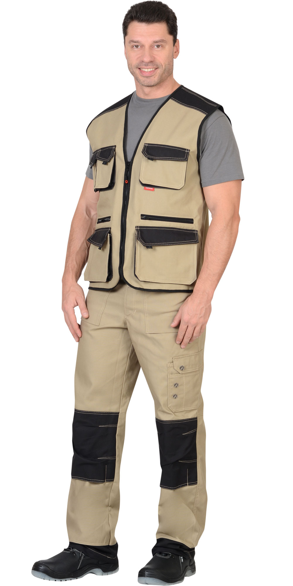 Жилет "ВЕСТ-ВОРК" летний бежевый с черным (ЧЗ) (104-108)