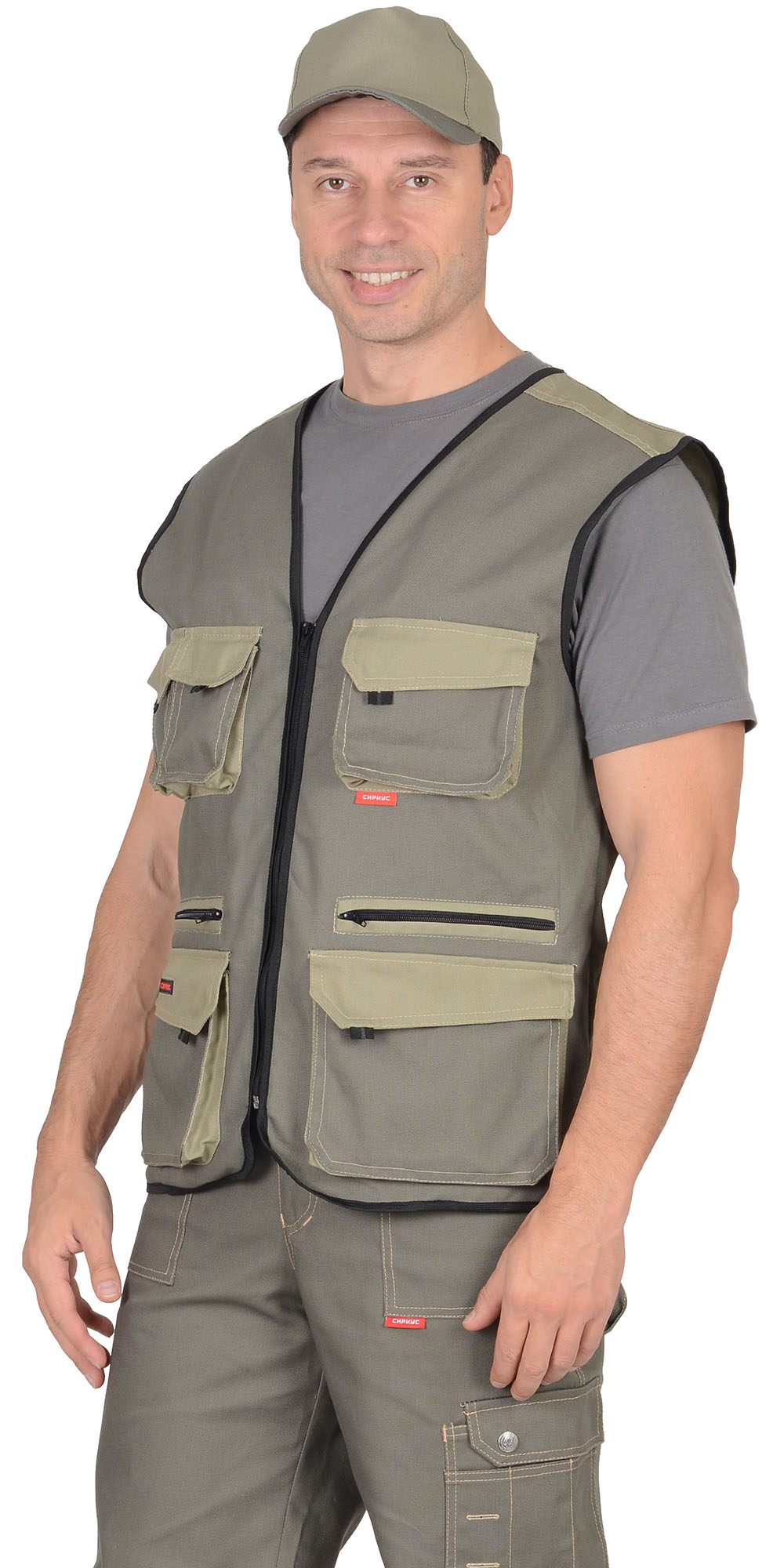 Жилет "ВЕСТ-ВОРК" летний: т.оливковый со св.оливковым (ЧЗ)